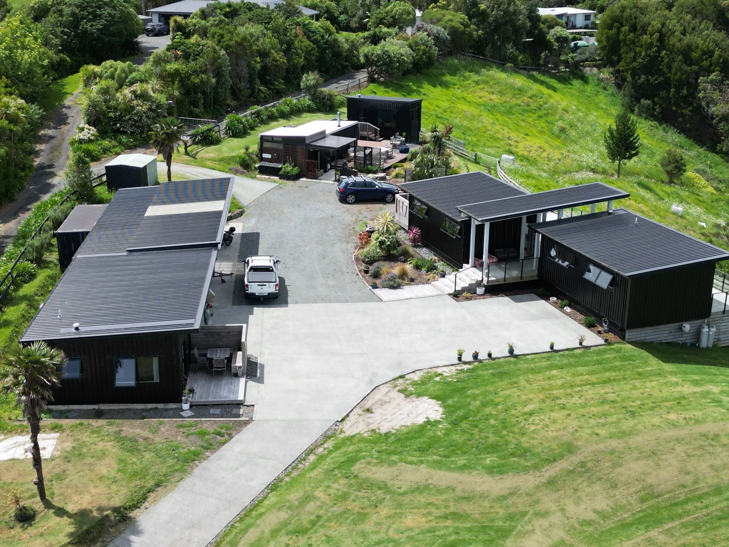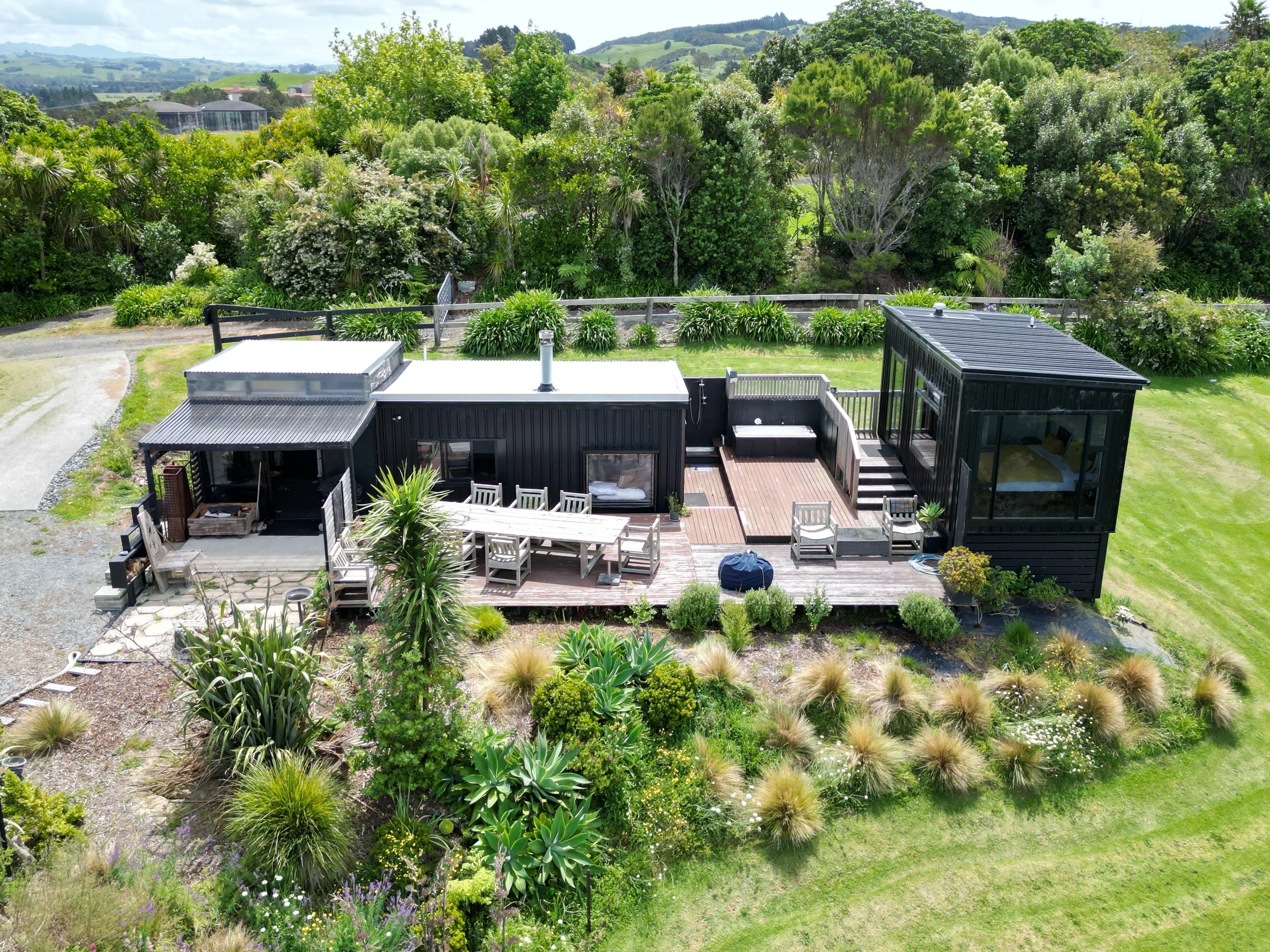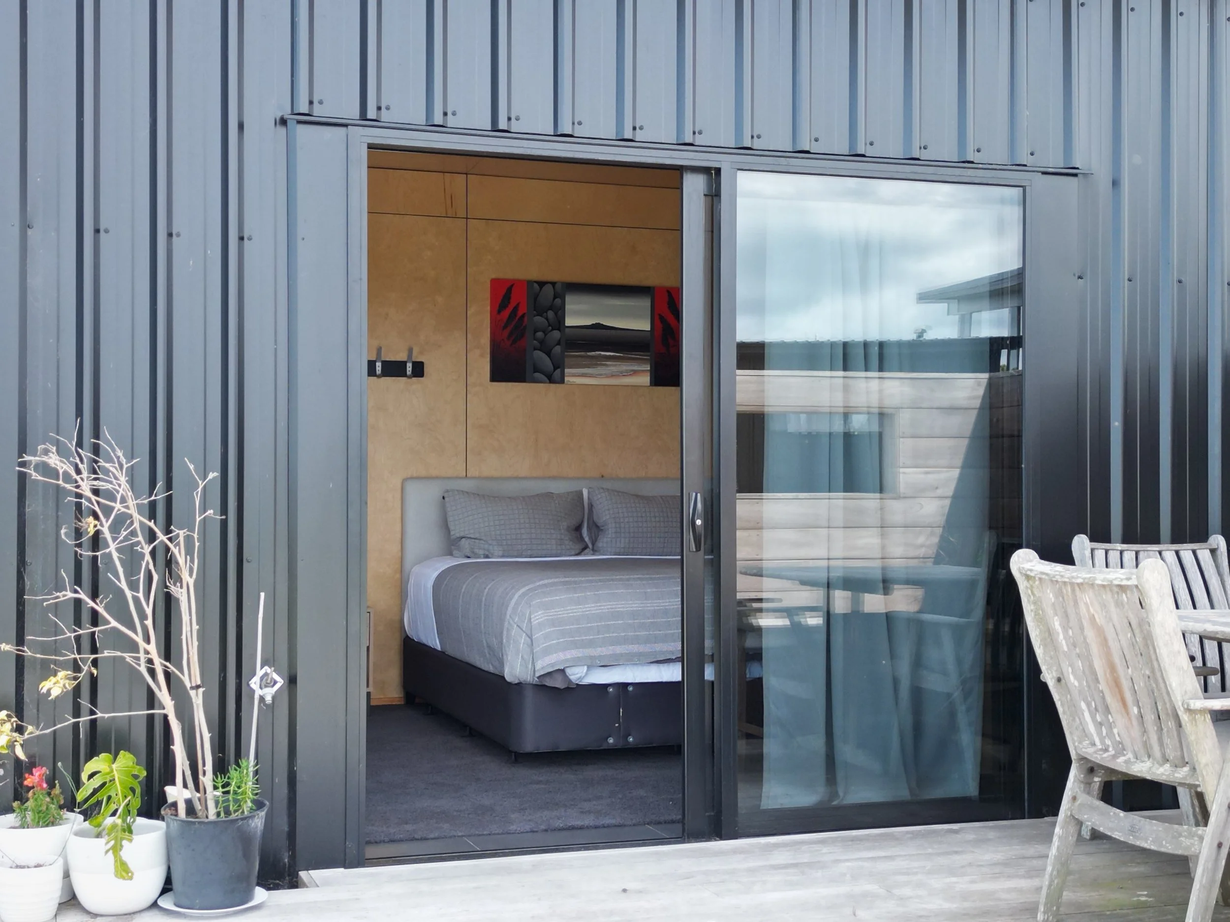 On the deck outside The Nest and The Cabin is a large macrocarpa table we refer to as “the Game of Thrones table”.
